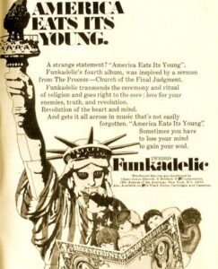 In the liner notes, George Clinton wrote: “We are all America; all part of the pain and suffering and the agony of America; all feeding the agony and conflict of America–whether we are for or against or indifferent and unconcerned; whether we care or not. America eats its young. But we eat America, pollute it, abuse it, rape it, take from it, destroy it.  As we give so do we receive…Christ help us: it’s not easy…The only way is to love our enemies!”